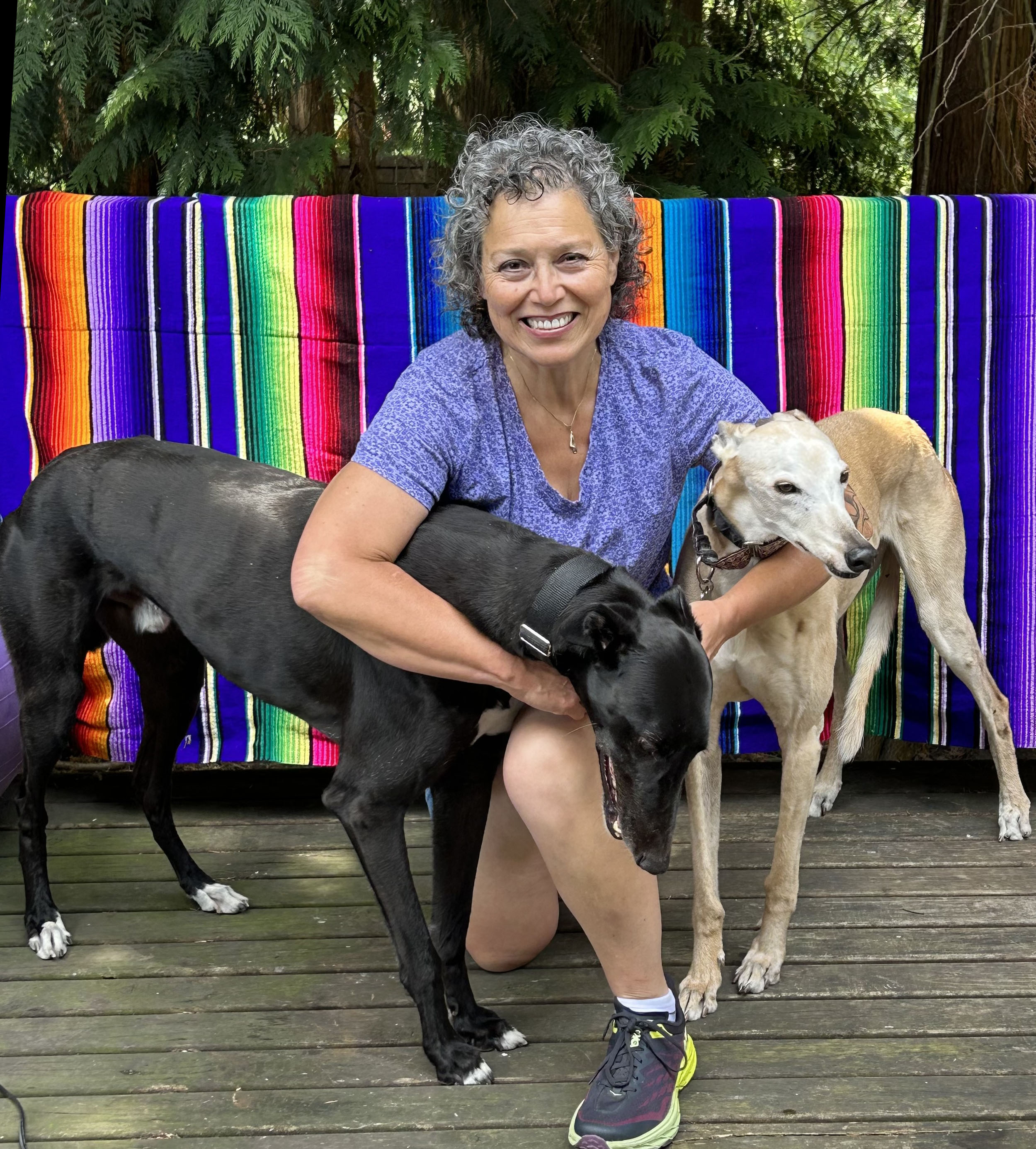 About Ada-Reva"When I tell people I have practiced yoga for over 50 years, the response is usually, 'Funny you don't look that old.' Let's just say my adolescence was not all rainbows, sunshine and unicorns. Yoga helped. A lot. Ada-Reva Spae is a health educator and yoga instructor, registered with Yoga Alliance at ERYT 500. She has studied with and is influenced by many revered yoga teachers, including Judith Lasater, Lizzie Lasater, Sarah Powers, Shari Friedrichsen, Nicolai Bachman and Jill Miller. She is a masters-prepared Nurse Educator, certified 200 hour Kripalu yoga instructor, and received her 500 hour certification from Eight Limbs Yoga in Seattle. Her teaching is a synthesis of her education and her life experiences. Ada-Reva lives in Seattle in a multigenerational household that always seems to have just enough room for greyhounds (AKA the 45 mph couch potato) from all over the world. There is a saying that as long as there is space on the floor, you can fit another greyhound. Resume (pdf) |